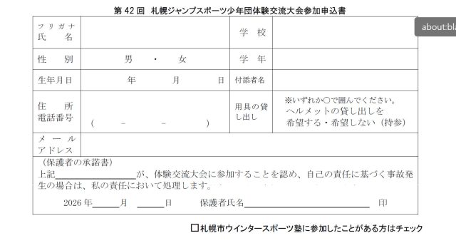 この度、下記日程にて第42回スキージャンプ体験交流大会を開催する運びとなりました。